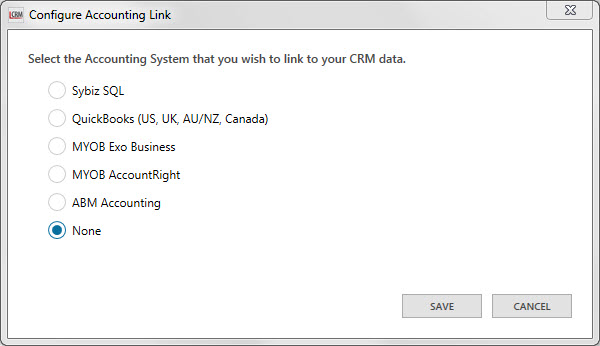 Select a different accounting system or ‘None’, then click ‘SAVE’.