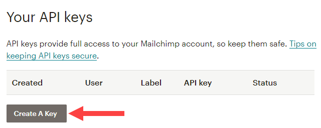 If you do not have an API key, click ‘Create A Key’ to create one.
