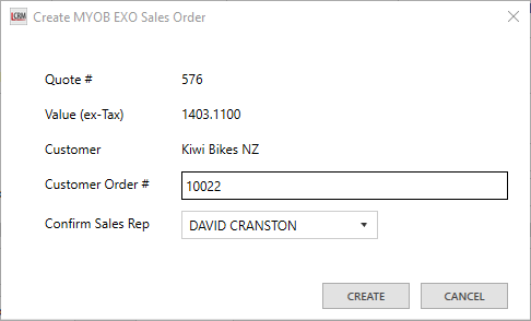 Once you create an MYOB EXO Sales Order, the quote will close in Legrand CRM.