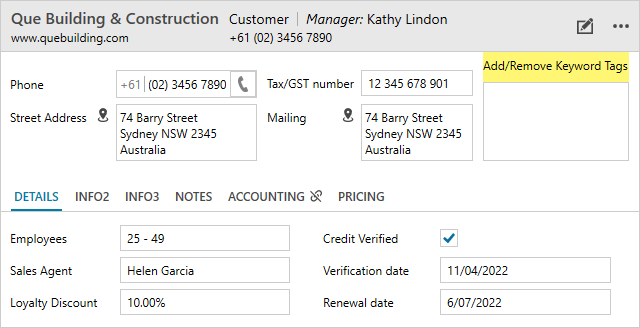 In the company record, click ‘Add/Remove Keyword Tags’.