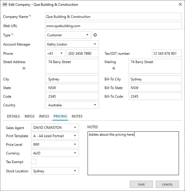 Update any company information as required and click ‘SAVE’.