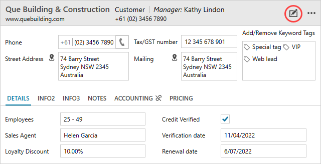 Click on the ‘edit’ icon in the selected company record.