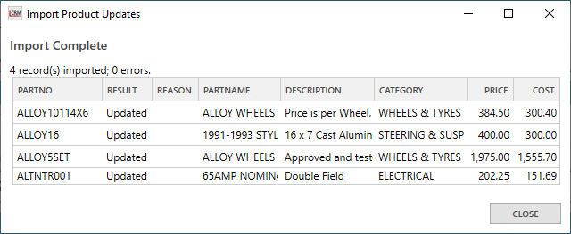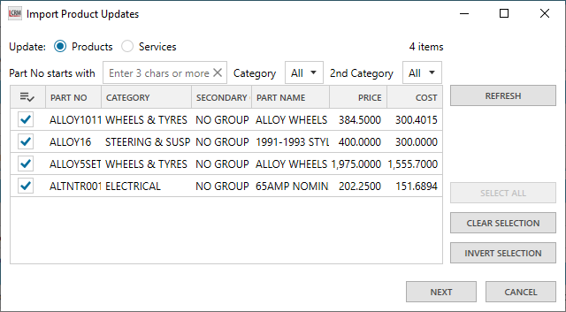 Filter between products or services and select the updated records you wish to import into Legrand CRM. Click ‘NEXT’ to confirm.