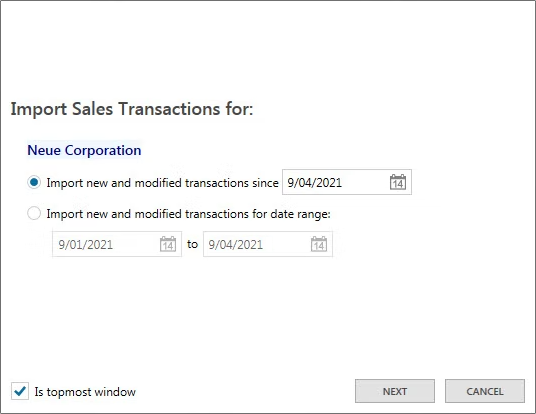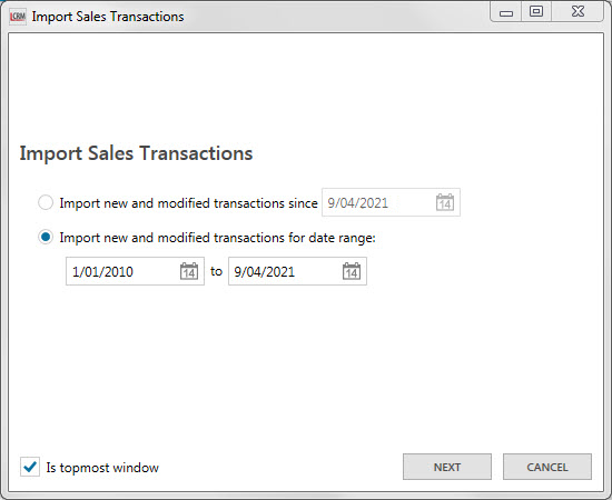 Select the first option to import transactions since the specified date or select the second option to import transactions for a specific date range.