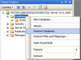 - Use ‘Restore database’ in the SQL Server Management Studio to create a new, mostly empty, database.