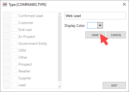A Company ‘Type’ refers to the type of company or business relationship the company has with your business. For example, a company type can be a prospect, customer, supplier etc. In Legrand CRM, you can configure the ‘Type’ field to suit your business requirements.