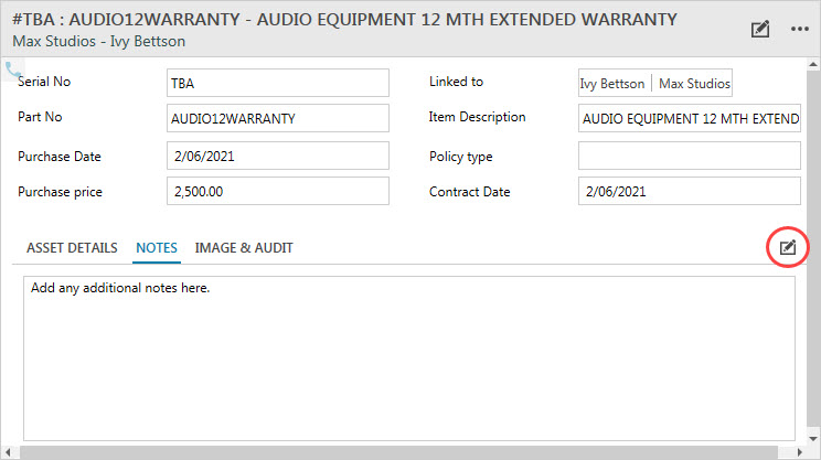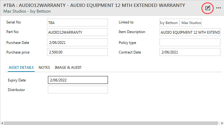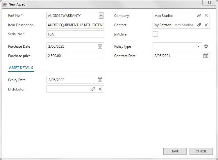 Contact: Link the Company’s Contact. The item sold by your business may have an expiry date and requires a member of your team to contact the client to renew the item.
