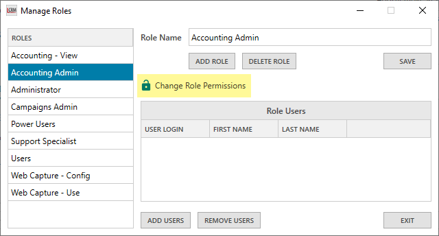 NOTE: If you add a new role and set up the permissions, ensure that you assign user account(s) to the role afterwards.
