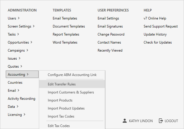 Go to the administration panel and click on Accounting > Edit Transfer Rules to define the transfer rules.