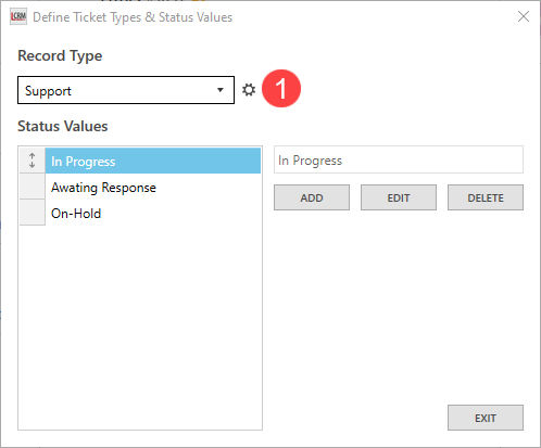 NOTE: Ticket management can become more complex if you define more ticket types and statuses. We recommend you start with one ticket type and introduce additional types and status values when needed.