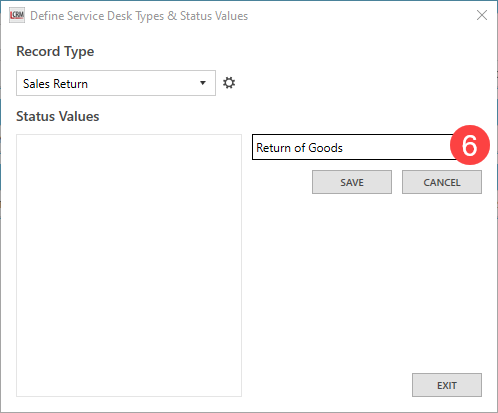 Enter a name for the ticket status and click ‘SAVE’. Repeat the process to define as many status values as required.